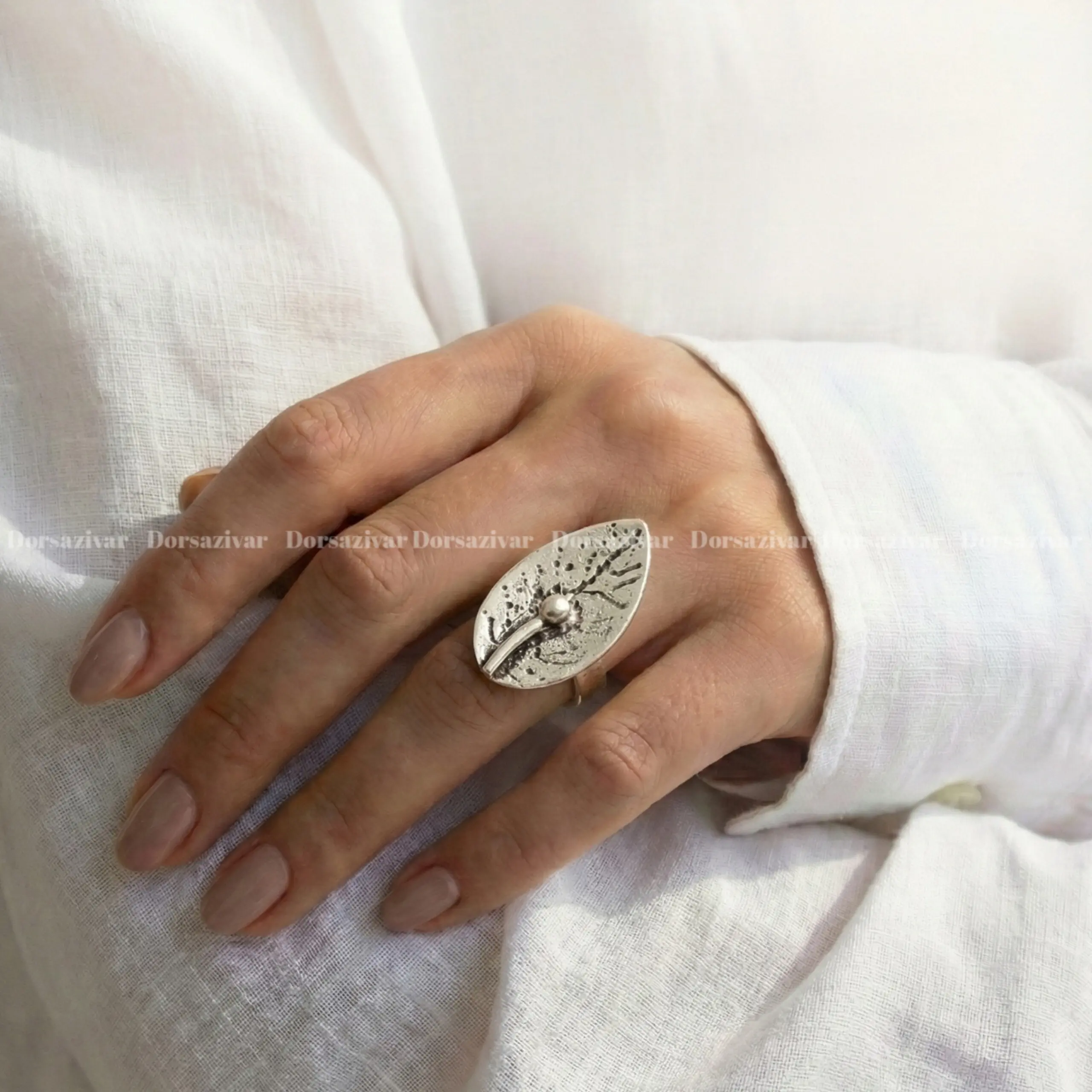 این انگشتر در سایز قابل تنظیم موجود می باشد. چنانچه سایز مناسب انگشتر برای انگشت خود را نمی دانید، می توانید انگشتر ورشو برگ را به سایزهای مختلف اندازه کنید و خریدی مطمئن با ما را تجربه نمایید و از خرید خود لذت ببرید.