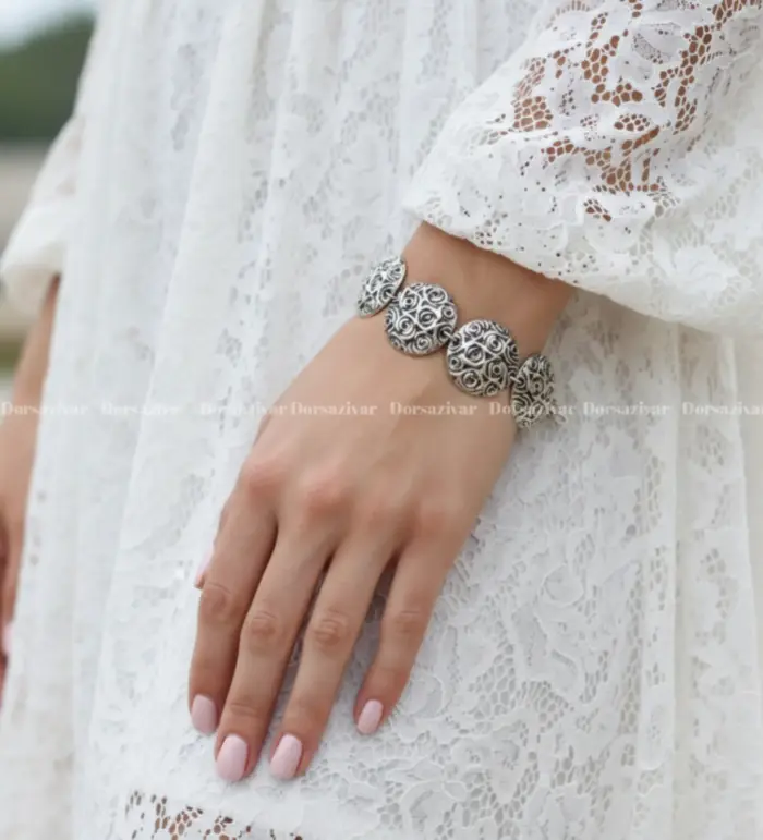 دستبند ورشو گل ، دستبندی جذاب می باشد. ورشو آلیاژی ساخته شده از فلزات مس، نیکل و روی . این فلز معمولاً با ترکیببندی ۶۰٪ مس، ۲۰٪ نیکل و ۲۰٪ روی ساخته میشود.و جلایی مانند نقره دارد و در برابر زنگزدگی مقاوم می باشد.
