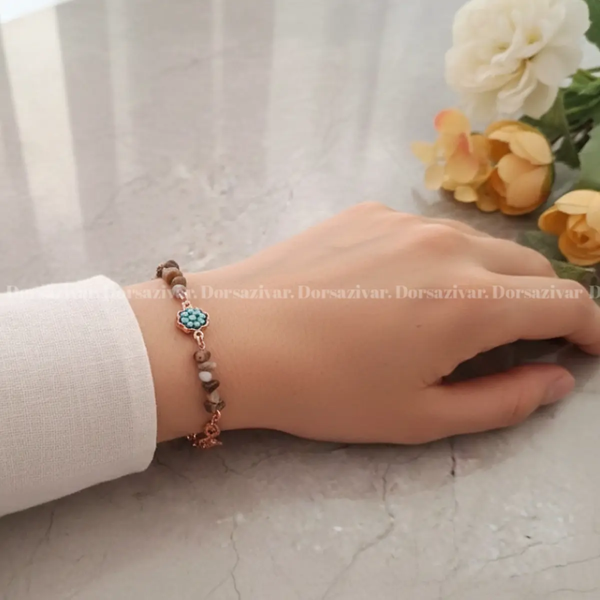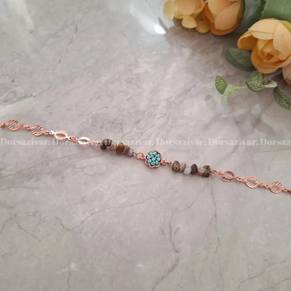 دستبند مس و فیروزه گل