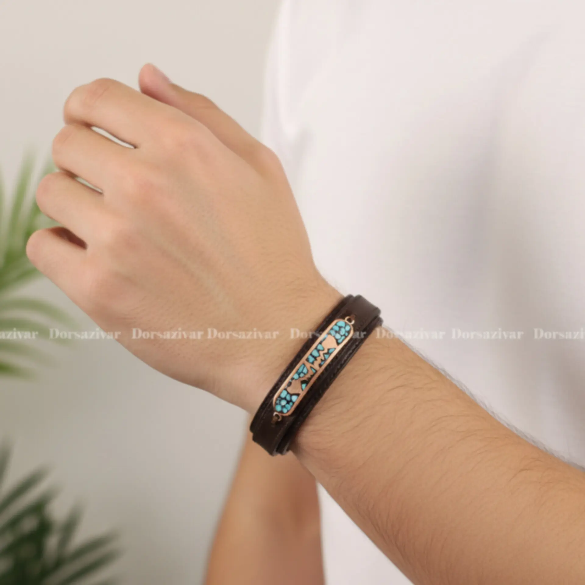 دستبند چرم و فیروزه ضربان قلب