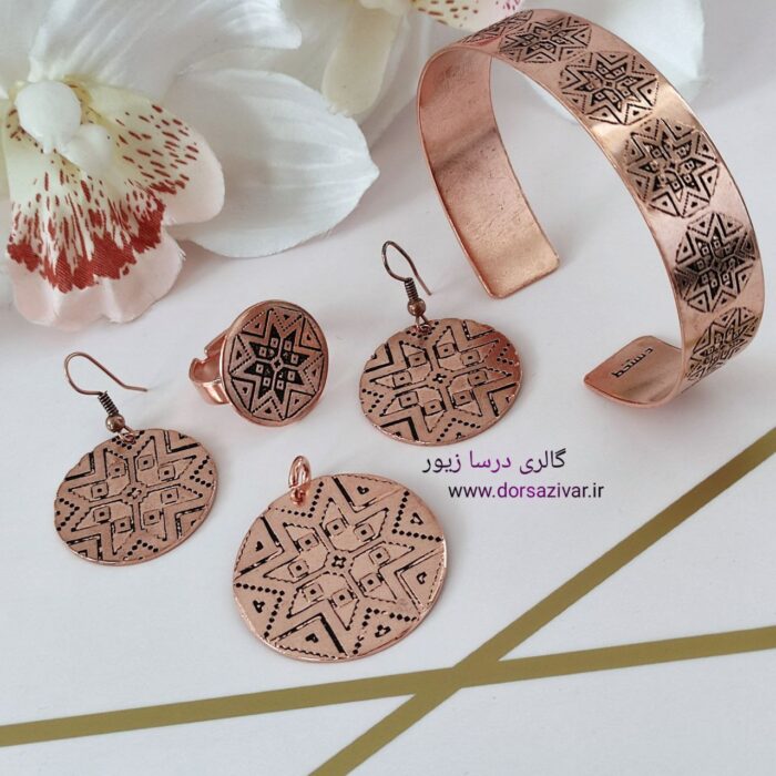 زیورآلات مسی نوعی از بدلیجات سنتی، چشم نواز و برای خانم ها، بدلیجاتی بی نظیر است. این سرویس مسی اسلیمی از ترکیب مس ساخته شده است.